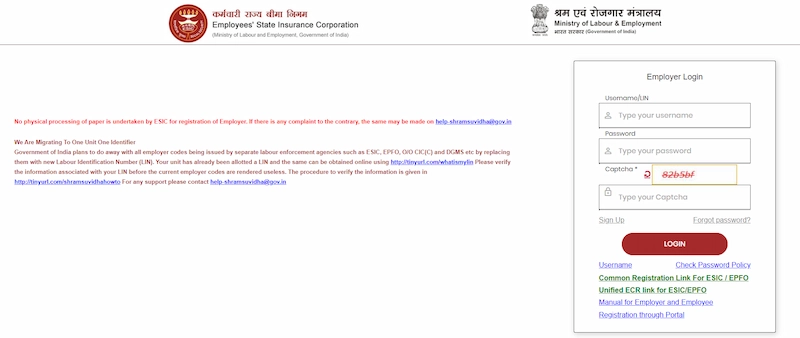 Step 1: Create an employer account on the ESIC portal